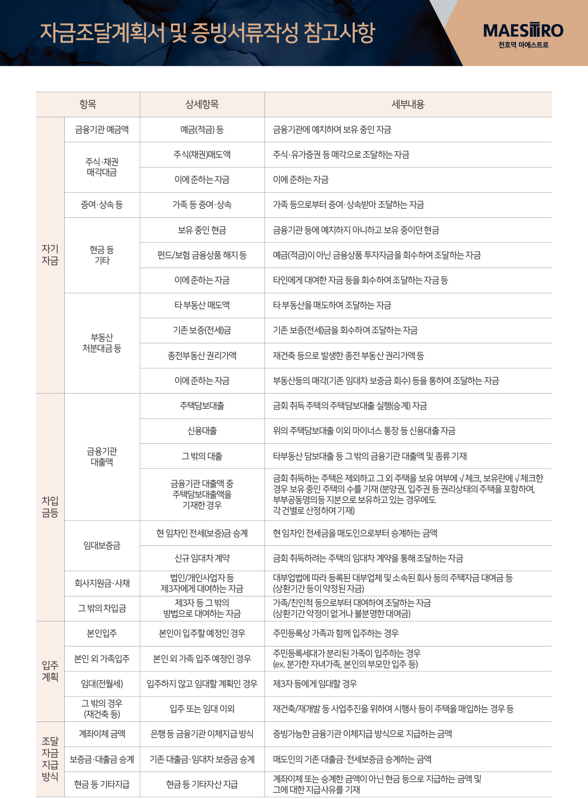 자금조달계획서는 사전에 작성하여 정당 계약기간 내 계약 시 제출 하시기 바랍니다.